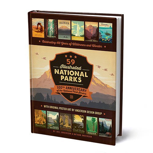 This amazing 160-page book is perfect for any outdoor lover, poster art fan, or American history buff. The large 9" x 12" full-color hardcover coffee table book includes all 59 of our National Park posters, plus 12 oil paintings, historic photos, a map of the USA, facts, travel tips, and the 100-year history of the National Park Service. 5 years ago, Joel Anderson and his team of award-winning artists set out to create a poster for each of the National Parks. Along the way, Joel and his son Nathan traveled to several parks gathering reference, photos, and inspiration for a book that would eventually combine the entire poster series with a wealth of interesting information. Designed by the talented artists of Anderson Design Group and written by Nathan Anderson, this beautiful National Park book is truly spectacular. Created to celebrate the upcoming 100th Anniversary of the National Park Service, it is sure to be a timeless keepsake.From reader reviews: